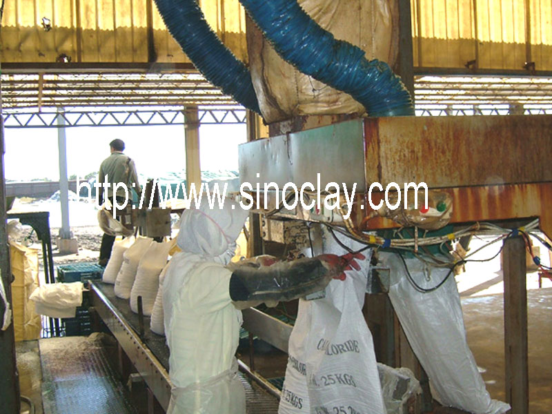 In mixing with modified starch or carboxymethyl cellulose, calcium chloride may make a powerful desiccant, which can absorb 250% of its own weight, at the same time, the modified starch or carboxymethyl cellulose may take the salt water to form a jelly. We pack 50 gram - 200 gram calcium chloride desiccant bags. Moreover, we may work several calcium chloride bags to a long chain calcium chloride desiccant with hook, which is good to use in the ocean container transportation.